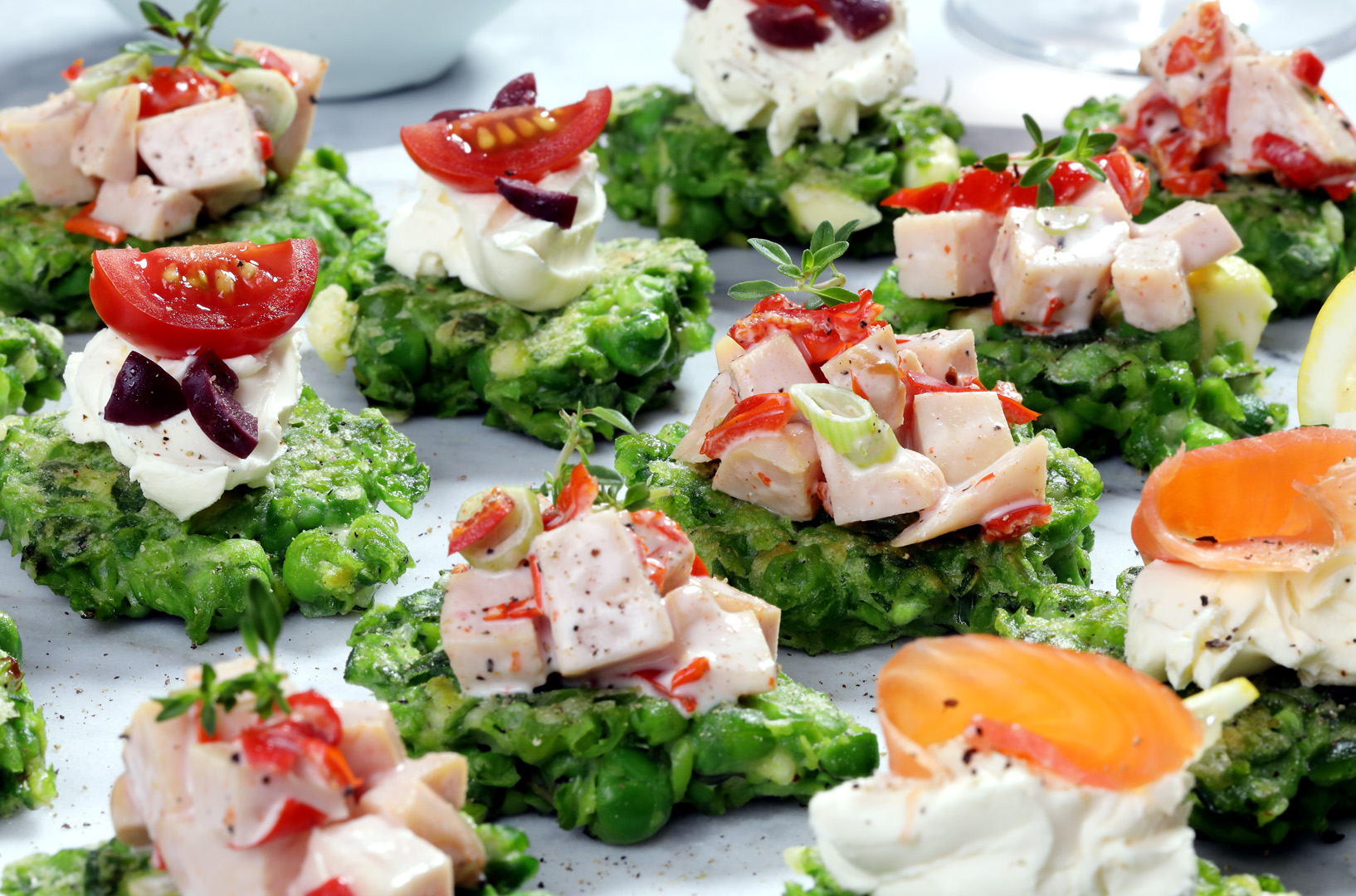1. Blitz the peas and all remaining ingredients except oil in a food processor until just blended and the peas are still fairly coarse. Cover with cling wrap and chill for 30 minutes.